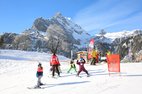 Beim neuen Imbissstand der Skischule gibts eine Stärkung für hungrige Mägen oder einfach einen Kaffee für Eltern, Grosseltern, Gottis und alle anderen stolzen Beobachter.